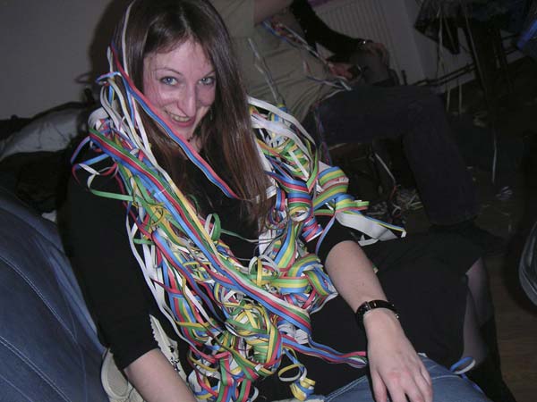 Pendant le réveillon de Nouvel An chez Benj. Comme je l'ai précisé dans la section Humour, là, elle était un peu beaucoup pétée... D'où son teint joliment rosâtre...