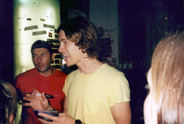 Là... contrairement à ce que l'on pourrait croire, il ne fait pas une grimace... Il est juste pris en pleine discussion avec un fan...